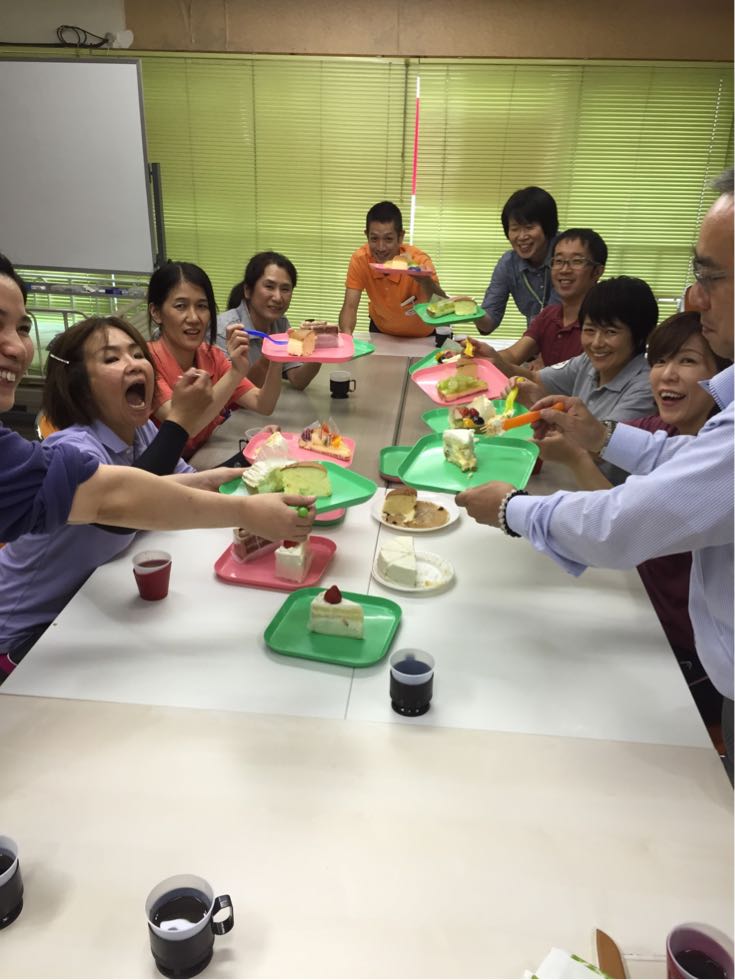 2015/09/21 Category : 社長より ニコニコホームページの更新を祝して(笑) 2年前に開設した ニコニコのホームページですが ほとんど放置状態でした(苦笑) 今回、がんばって全体の見直しを行いました♪ 何とか出来上がったので 社長が、ご褒美に自転車でケーキを買いに行ってくれました。 大阪では有名な 「りくろーおじさんの店」 です 全員でジャンケンで 勝った者からケーキが選べます♪ 一番に勝ったのは、ケアマネさんです。 選びたい放題だよ~~~♪ 昼食直後だというのに、みんな2個ずつのケーキを完食です(笑) ちなみに、ホームページの作成は主任が一人で作ったのですが なぜか、スタッフ全員にご褒美が当たる・・・ まぁ~美味しいからいいか!!(笑) PR